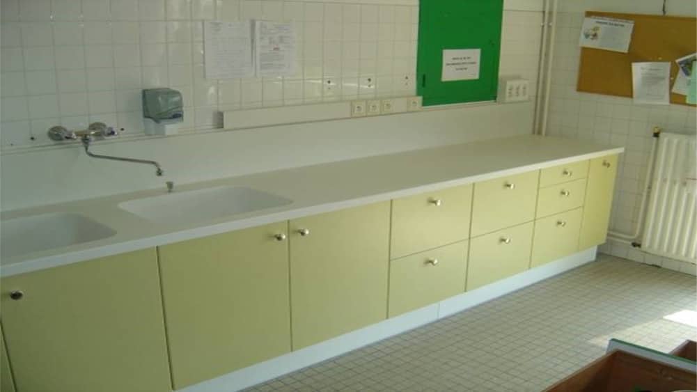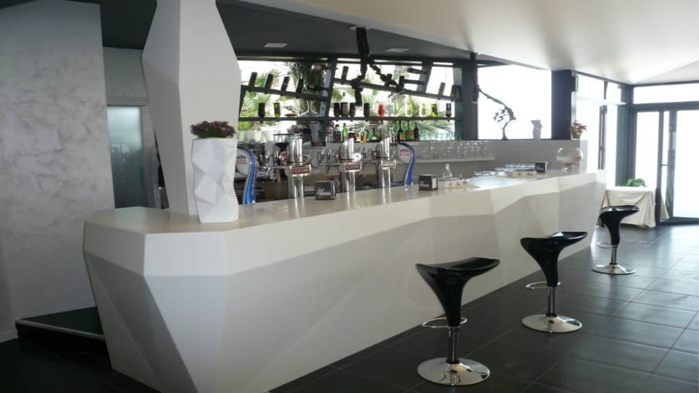 Nyilvános használatú közösségi terekben alkalmazott pultok nagy igénybevételnek vannak kitéve, így mindenképpen ellenálló felületet szükséges alkalmaznunk. Így jelentősen csökkentve a felhasználható anyagok körét.